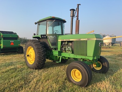 JD 4640 2WD TRACTOR w/ SHOWING 8408 HRS, 3 HYDRAULICS, BIG 1000 PTO w/ SMALL 1000 REDUCER, DRAWBAR, ADJUSTABLE AXLES, QUAD TRANSMISSION, UPGRADED STEPS, 20.8-38 REARS, REAR WHEEL WEIGHTS, HEAT, AC, RADIO. s/n - 4640HM028970RW LOTS 1 TO 4 ARE GROUPED TOGETHER, THIS DOES NOT MEAN YOU HAVE TO BUY ALL LOTS IN THIS GROUP, BUT THE BIDDING WILL REMAIN OPEN ON ALL THE LOTS UNTIL THERE ARE NO MORE BIDS ON ANY LOT AT THEIR CLOSING TIME. |