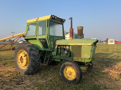JD 4020 DIESEL 2WD TRACTOR w/ SHOWING 9217 HRS, POWER SHIFT TRANSMISSION, 2 HYDRAULICS, 540/1000 PTO, DRAWBAR HITCH, REAR WHEEL WEIGHTS, 18.4-34 REARS, HEAT, AC, RADIO, CAB. s/n - SNT223P100321R LOTS 1 TO 4 ARE GROUPED TOGETHER, THIS DOES NOT MEAN YOU HAVE TO BUY ALL LOTS IN THIS GROUP, BUT THE BIDDING WILL REMAIN OPEN ON ALL THE LOTS UNTIL THERE ARE NO MORE BIDS ON ANY LOT AT THEIR CLOSING TIME. |