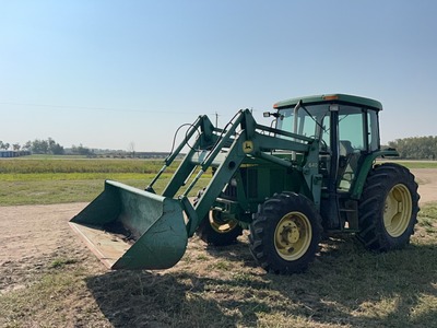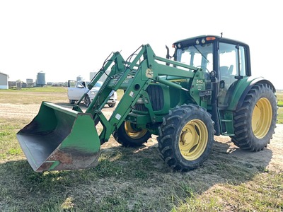JD 6420 FWA TRACTOR w/ SHOWING 7948 HRS, HRS WILL GO UP AS TRACTOR IS STILL BEING USED, 3 PTH, 540/1000 PTO, 3 HYDRAULICS, REAR 3PTH CONTROLS, JD 640 SELF LEVELING LOADER w/ 86" SMOOTH BUCKET, LEFT HAND REVERSER, HEAT, AC, RADIO, ITV TRANSMISSION, 480/80R38 REARS, BUDDY SEAT. s/n - L06420P410078 LOTS 1 TO 4 ARE GROUPED TOGETHER, THIS DOES NOT MEAN YOU HAVE TO BUY ALL LOTS IN THIS GROUP, BUT THE BIDDING WILL REMAIN OPEN ON ALL THE LOTS UNTIL THERE ARE NO MORE BIDS ON ANY LOT AT THEIR CLOSING TIME. |