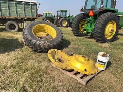 2- GOODYEAR 20.8-38 DUALS w/ HUBS w/ CAME OFF TRACTOR IN LOT #2 LOTS 1 TO 4 ARE GROUPED TOGETHER, THIS DOES NOT MEAN YOU HAVE TO BUY ALL LOTS IN THIS GROUP, BUT THE BIDDING WILL REMAIN OPEN ON ALL THE LOTS UNTIL THERE ARE NO MORE BIDS ON ANY LOT AT THEIR CLOSING TIME. |