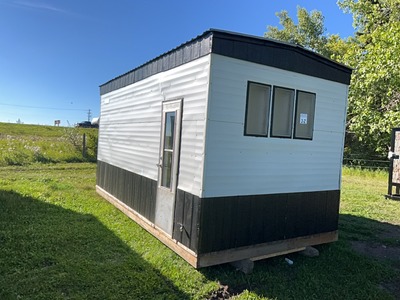 8'X16' SMALL CABIN - LOCATED IN SOUTH YARD w/ WIRING FOR PLUG INS & LIGHTS, WALLS & ROOF ARE INSULATED, 2X6 FLOOR, SKIDS, BATHROOM PLUMBING ON THE INSIDE |