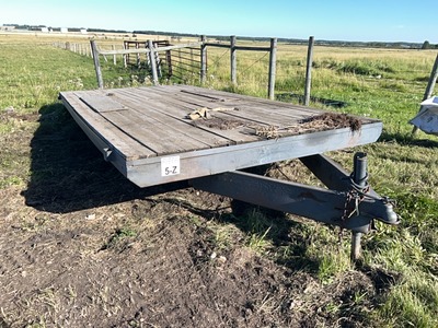 SHOPBUILT 16'X8'W S/A FLAT DECK BUMPER PULL TRAILER - LOCATED IN SOUTH YARD w/ PIN HITCH, DECK IS POOR |