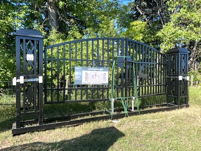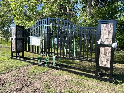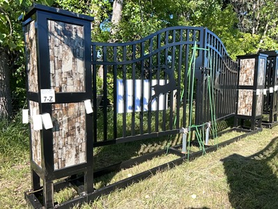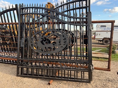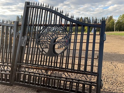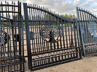 NEW/UNUSED 14' BI-PARTING ESTATE GATE PANELS w/ TREE LOGO LOT 12Z TO 15Z ARE GROUPED TOGETHER, THIS DOES NOT MEAN YOU HAVE TO BUY ALL LOTS IN THIS GROUP, BUT THE BIDDING WILL REMAIN OPEN ON ALL THE LOTS UNTIL THERE ARE NO MORE BIDS ON ANY LOT AT THEIR CLOSING TIME |